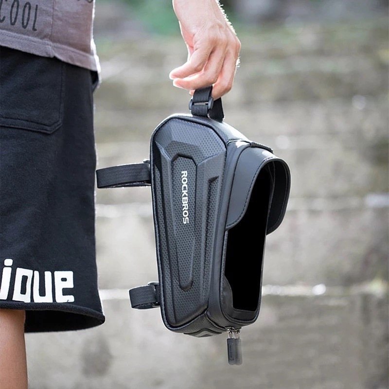 This bike bag is made of waterproof material, designed with double waterproof zipper to keep your items dry when you meet rainy days or harsh environments, protects your items well when exposed to external shocks, with a high-sensitivity TPU film window on the bike front frame bag, it is easy to manually operate your phone while riding. Large screen is fully compatible with mobile phones under 6.8 inches in size such as iPhone 11/12 Pro XR XS MAX 8 7 6s, waterproof .